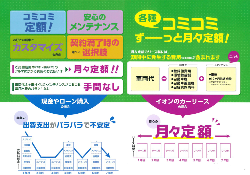 現金やローン購入の場合、各種手続きや毎年の出費支出がバラバラで不安定になります。