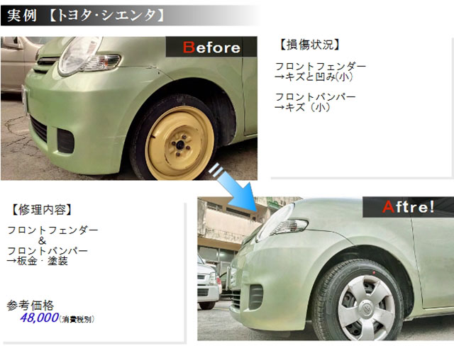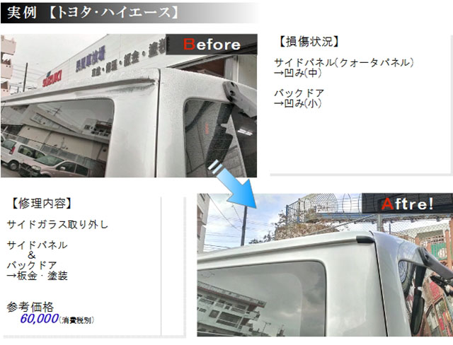 修理金額をいくつかの実例で紹介しておりますが、これはあくまでも目安です。
